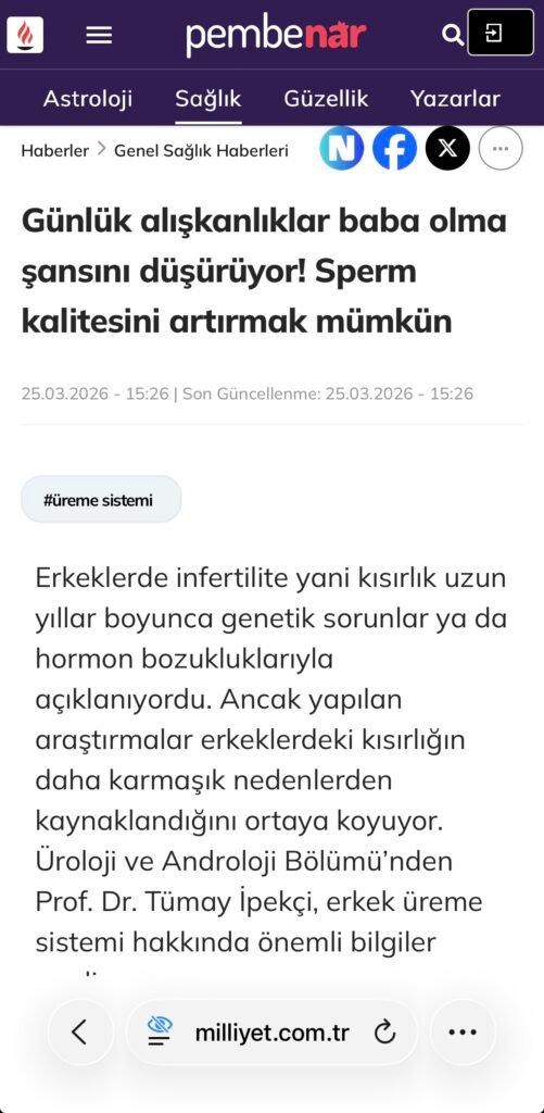 Erkeklerde infertilite yani kısırlık uzun yıllar boyunca genetik sorunlar ya da hormon bozukluklarıyla açıklanıyordu. Ancak yapılan araştırmalar erkeklerdeki kısırlığın daha karmaşık nedenlerden kaynaklandığını ortaya koyuyor. Artık sadece genler değil, genlerin nasıl çalıştığı da büyük önem taşıyor. Sperm hücreleri yalnızca DNA taşımıyor aynı zamanda yaşam tarzı, çevre ve erkek yaşının etkilerini de içinde barındırıyor. Bu durum hem çocuk sahibi olma ihtimalini hem de gelecekte doğacak çocukların sağlığını da etkileyebiliyor. Memorial Şişli Hastanesi Üroloji ve Androloji Bölümü’nden Prof. Dr. Tümay İpekçi, erkek üreme sistemi hakkında önemli bilgiler verdi.